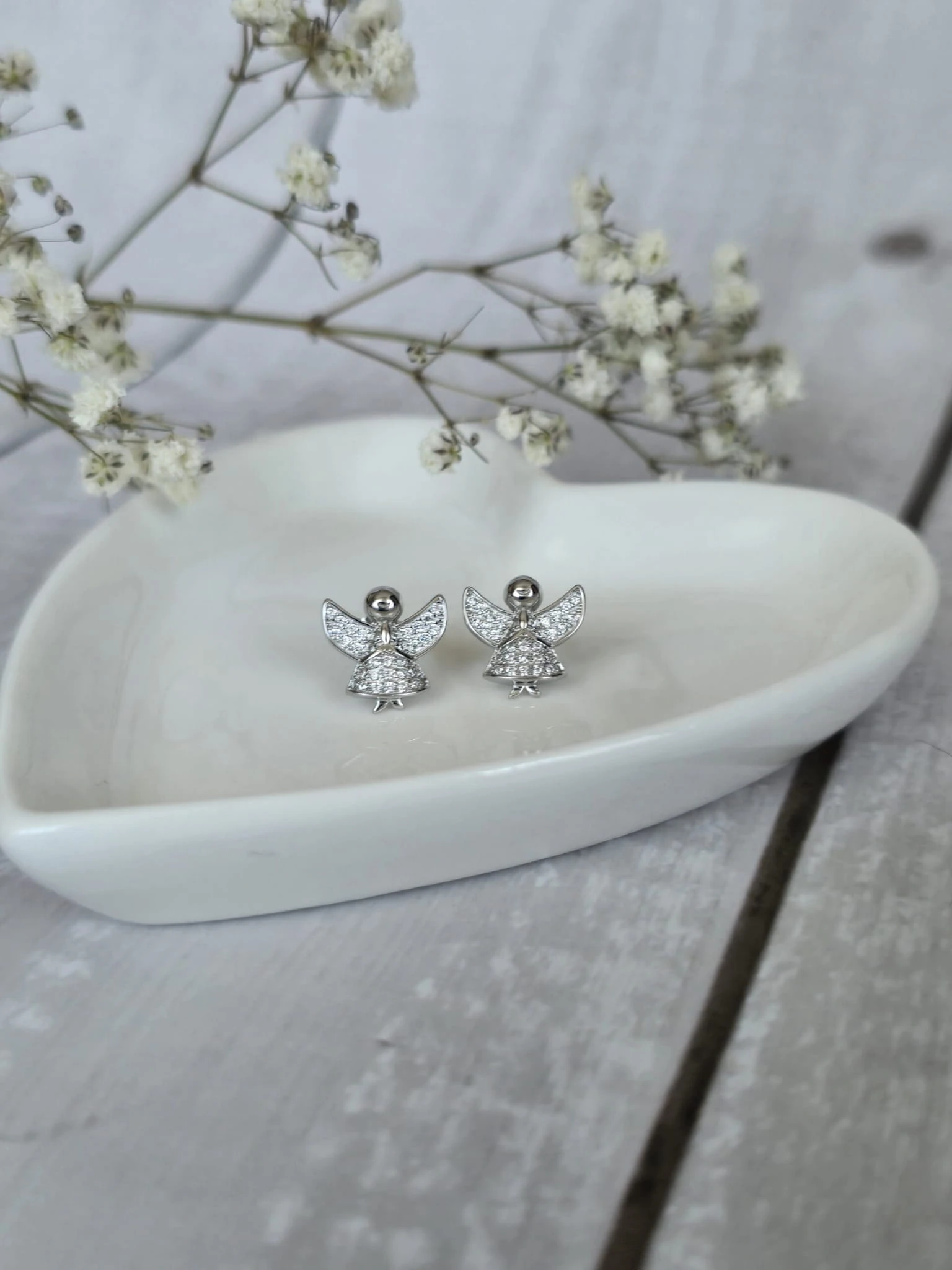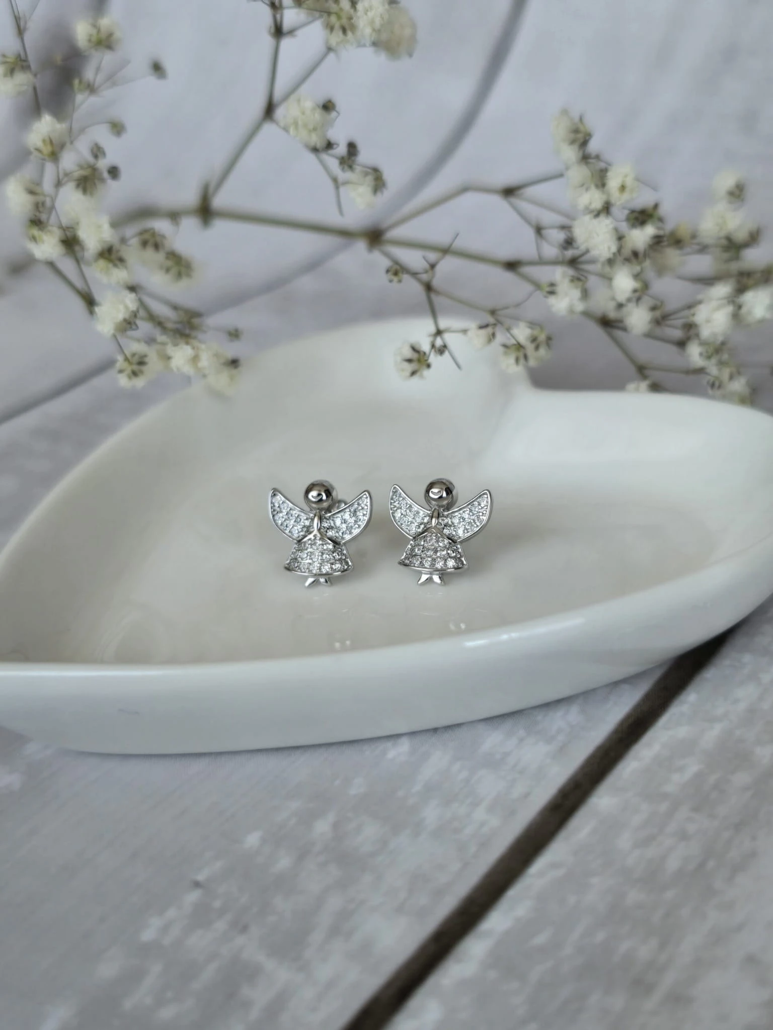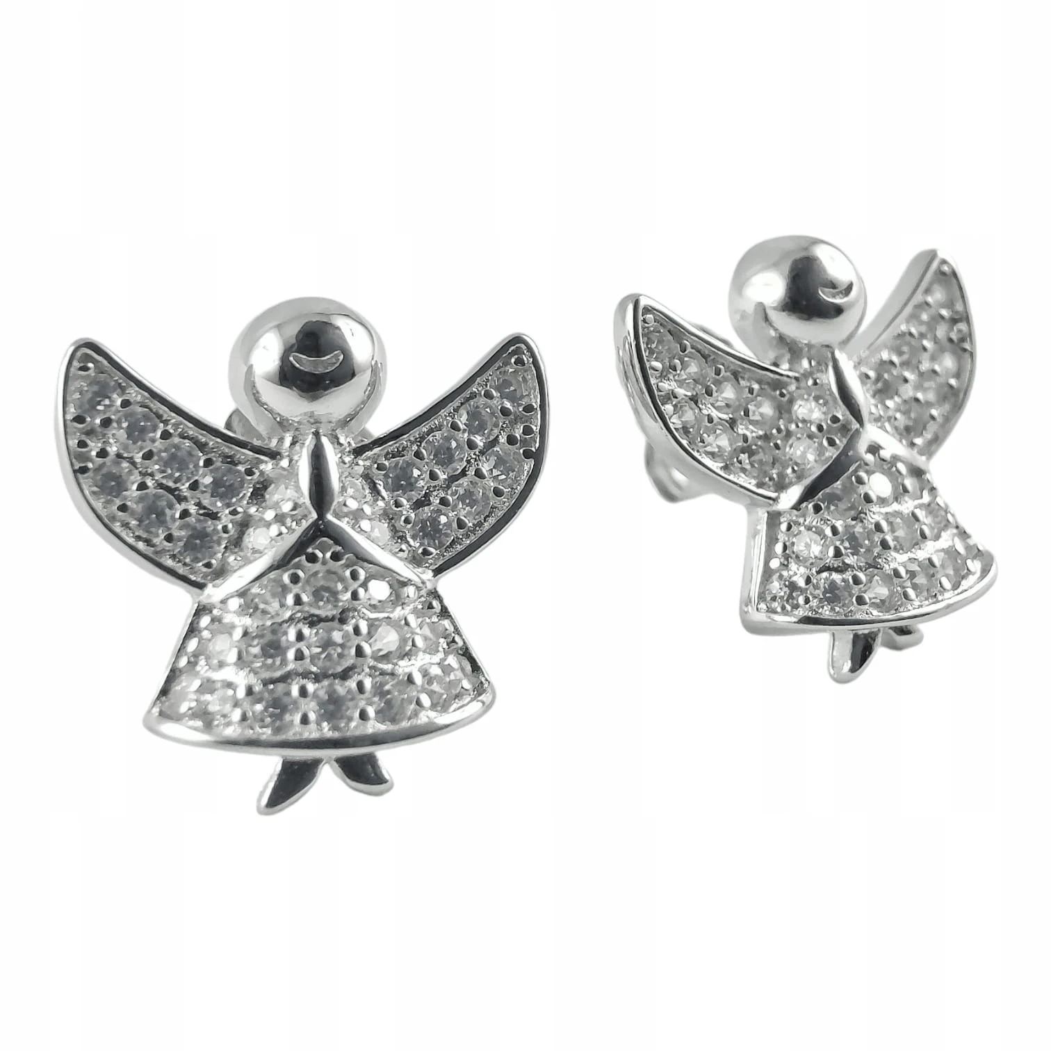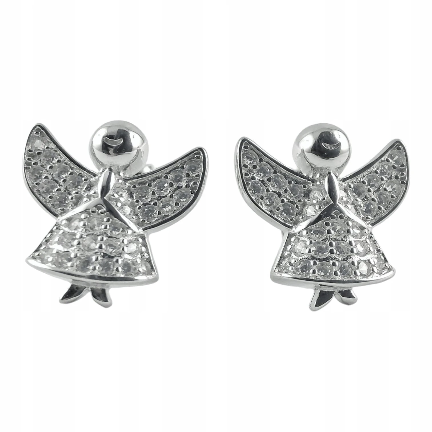 KOLCZYKI ANIOŁKI Z CYRKONIAMI SREBRNE SREBRO 925