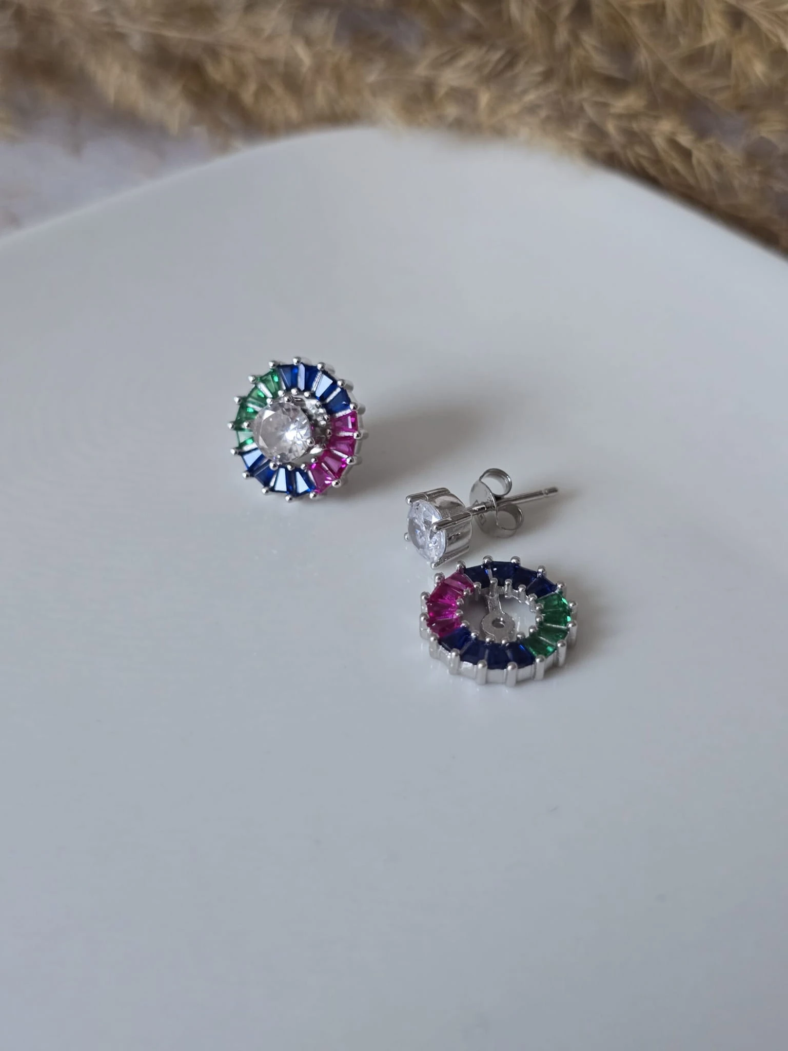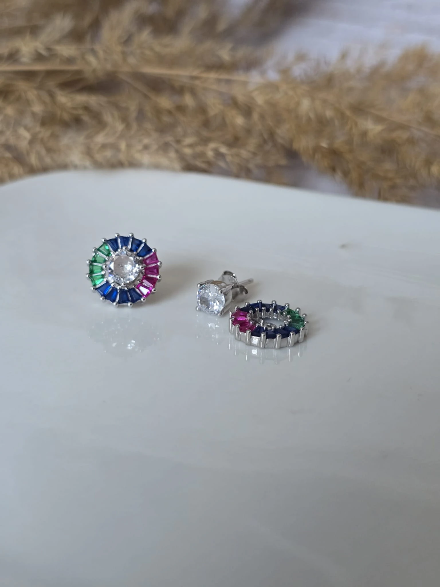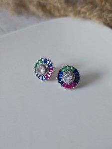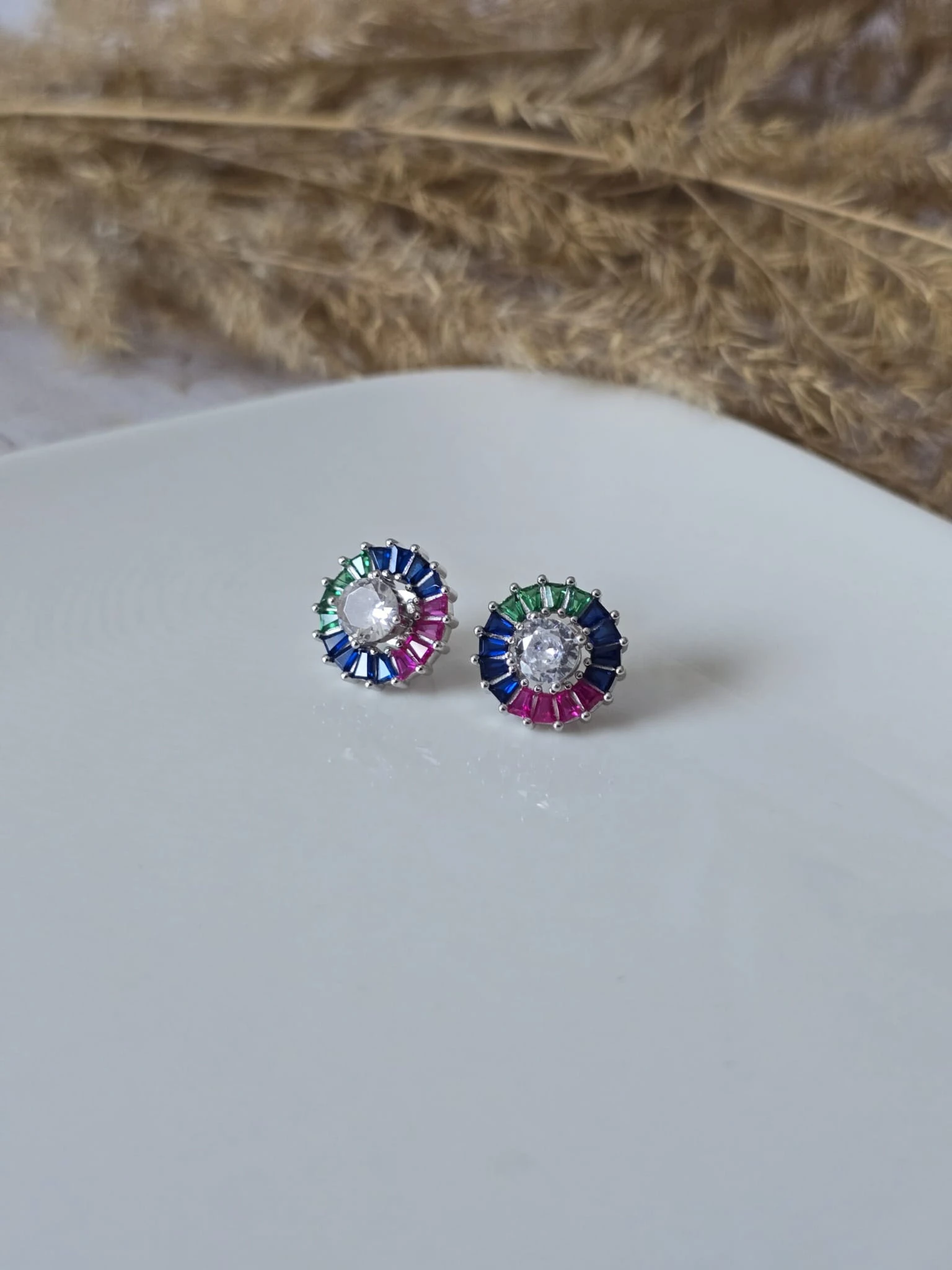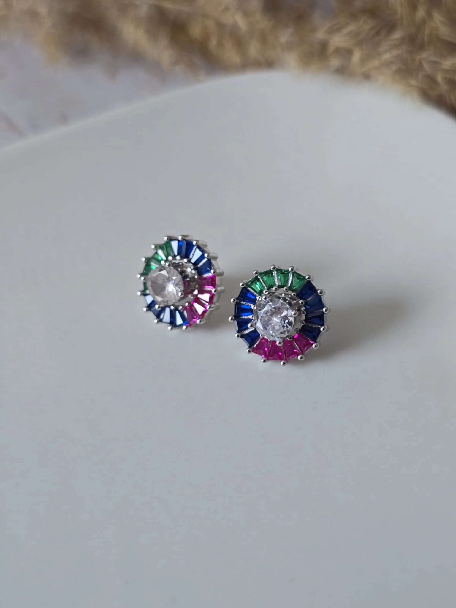 Srebrne kolczyki sztyfty z kolorowymi cyrkoniami | Srebro 925