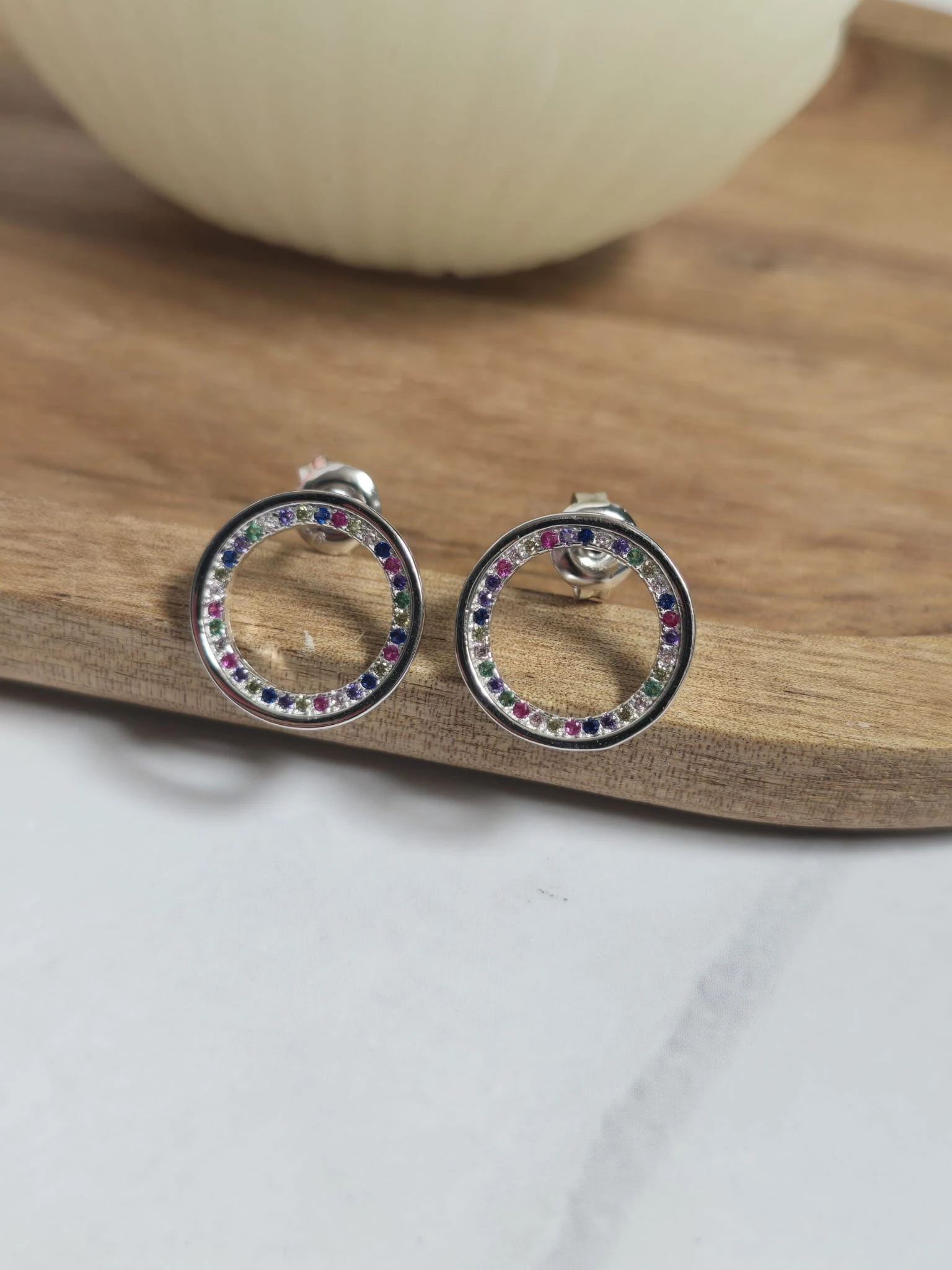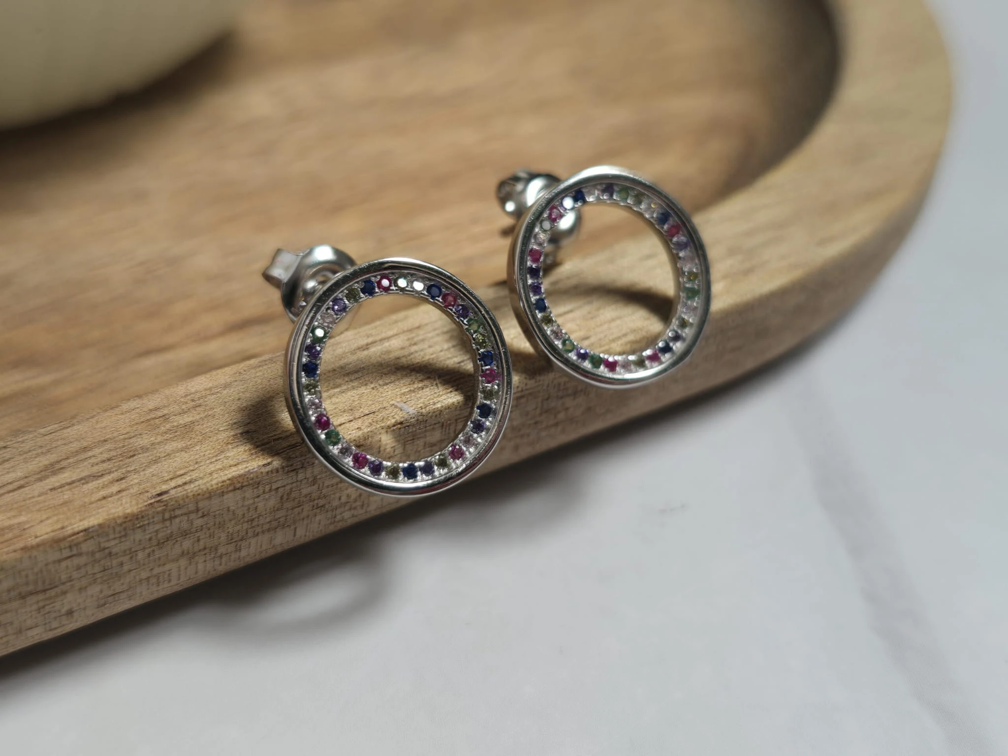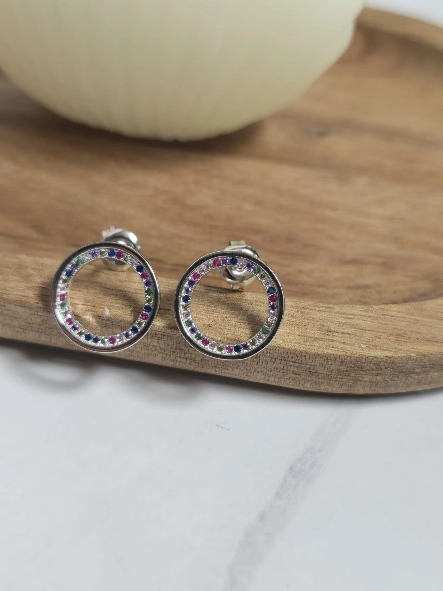 Kolczyki kółka z kolorowymi cyrkoniami