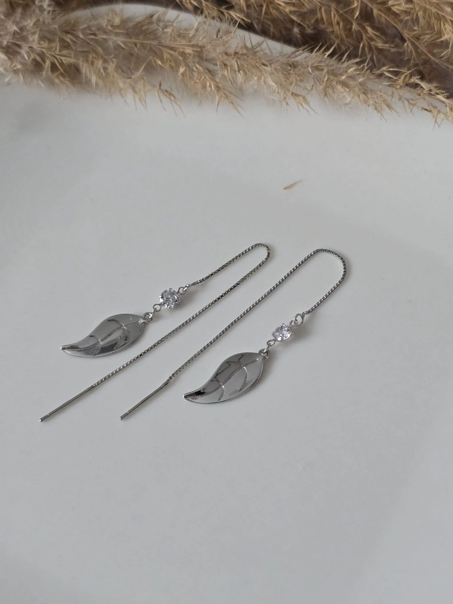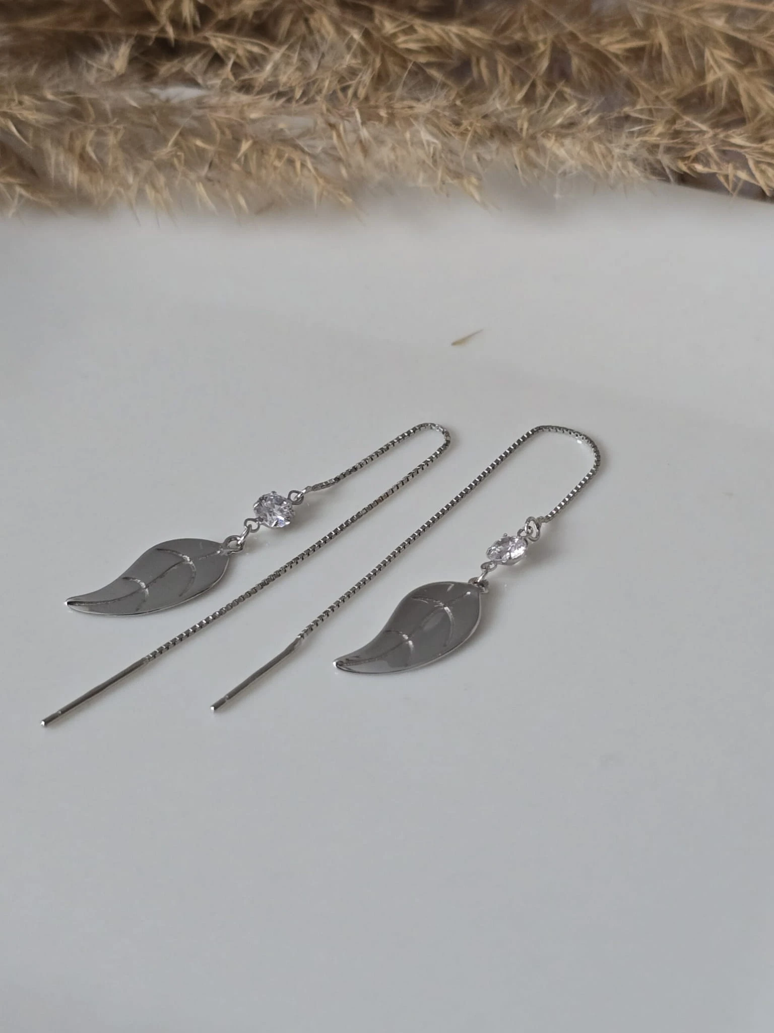 Kolczyki „Leśny Szept” to subtelny i elegancki dodatek, który doda lekkości i finezji każdej stylizacji. Przeciągane przez ucho, zakończone delikatnym listkiem (15 mm x 7 mm), wykonane ze srebra próby 925, łączą w sobie minimalistyczny design i naturalną inspirację. Idealne dla kobiet, które cenią detale i subtelne akcenty.