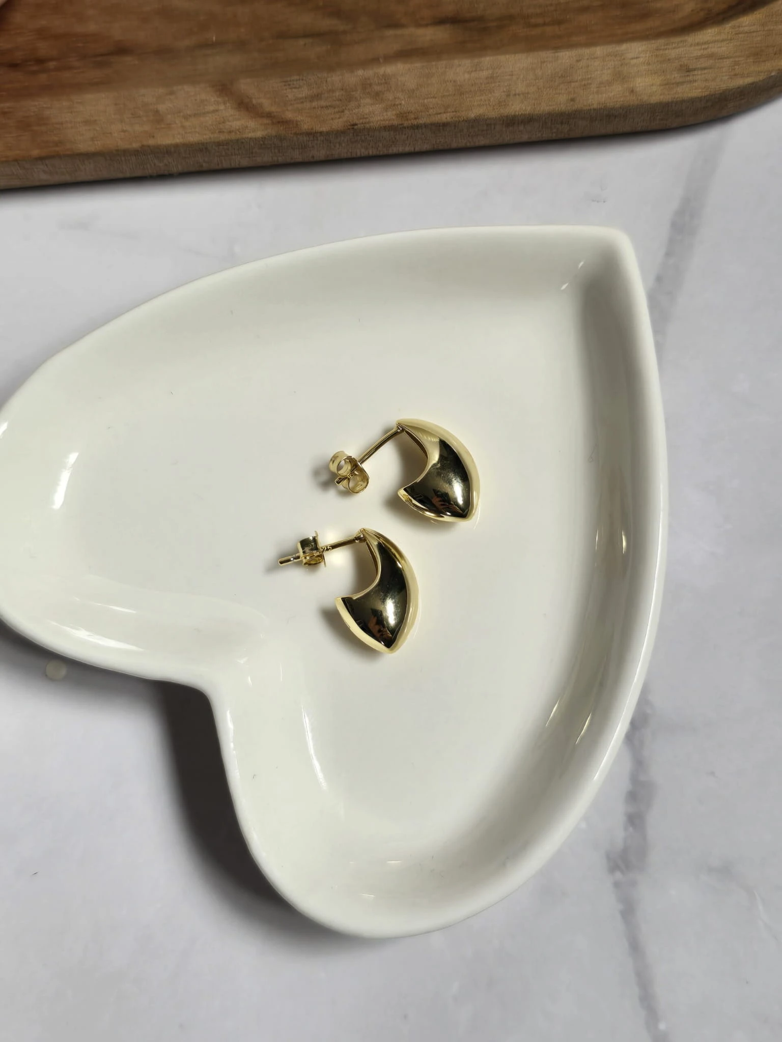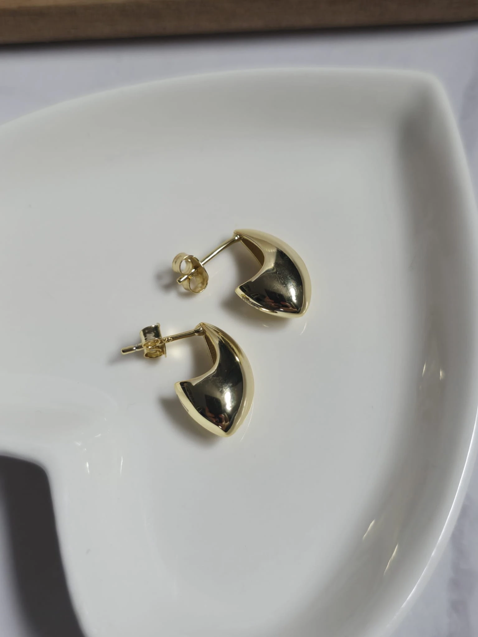 Eleganckie kolczyki wykonane ze srebra próby 925, pokryte złoceniem, w klasycznym kształcie na sztyft. Ich długość wynosi około 2 cm, co nadaje im subtelnej elegancji i uniwersalnego charakteru.